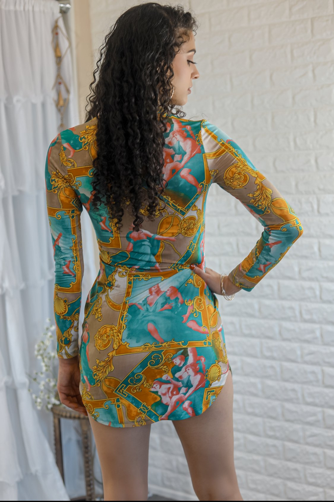 Absolutely stunning mini dress. Model is 5’6 and wearing a size small. Fits true to size.